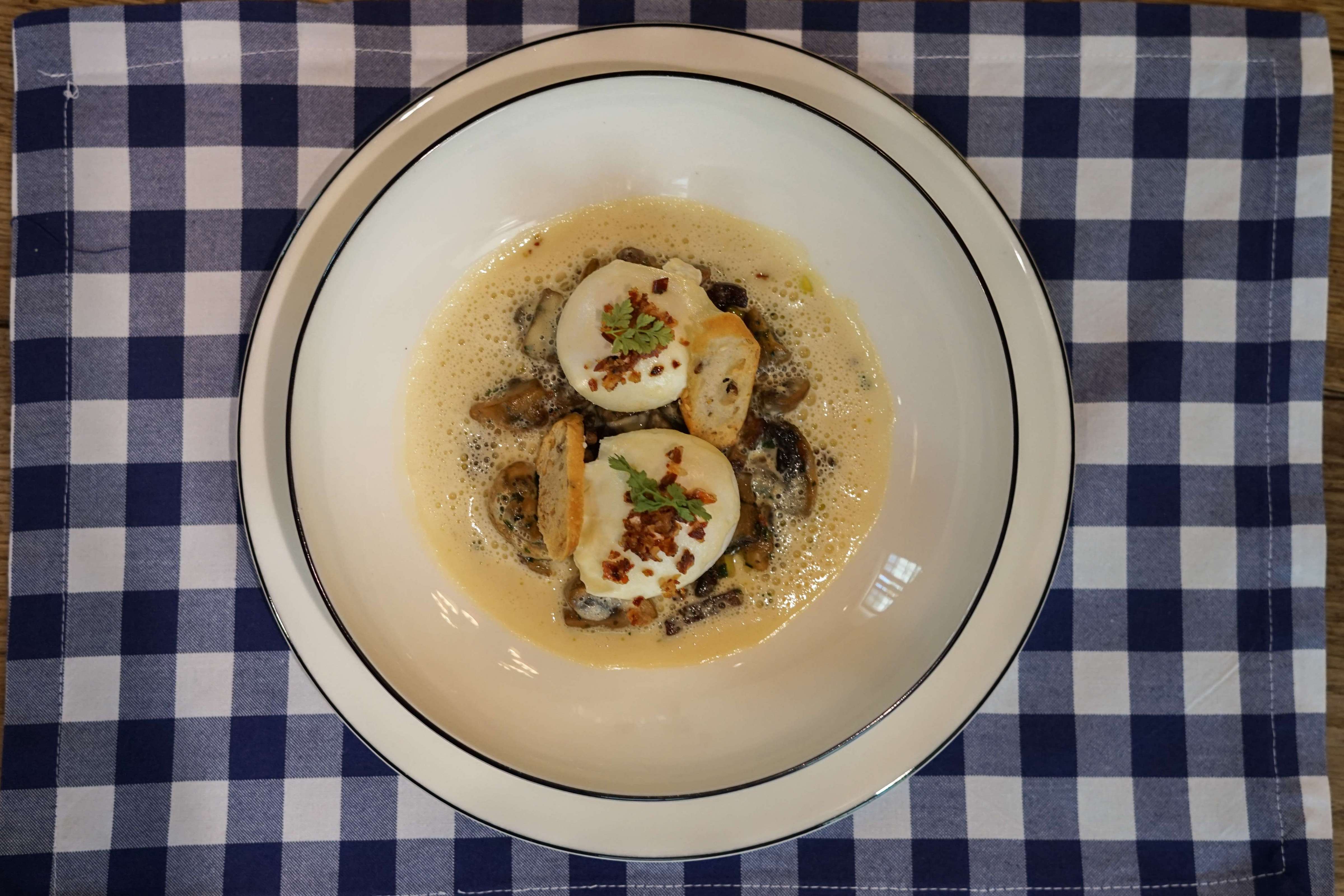 Le Bistrot est aménagé dans les anciennes cuisines de la bâtisse historique de l’Hostellerie datant de 1750, cheminée à double foyer et murs en pierres apparentes donnent le ton.